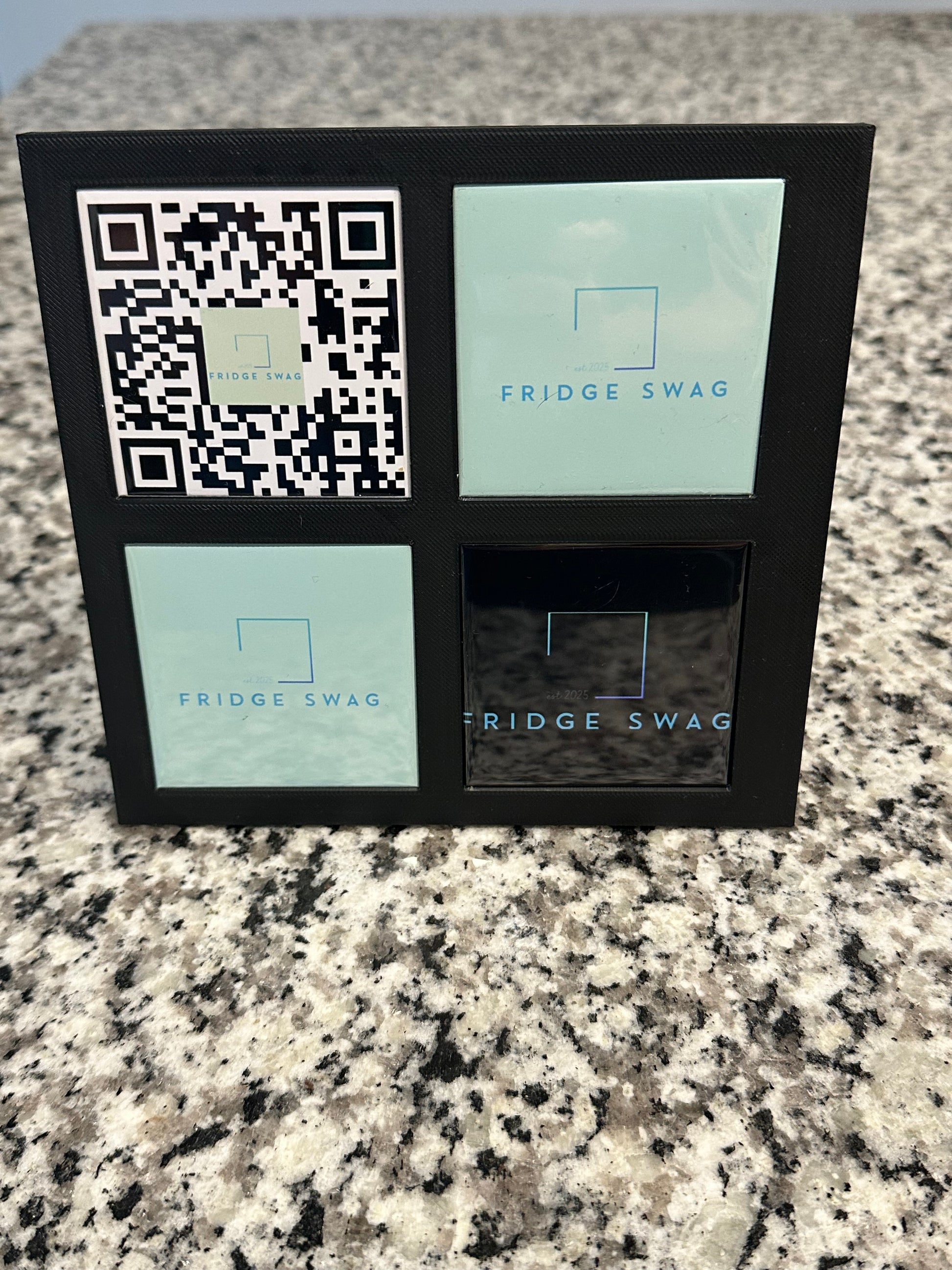 Show off your favorite memories in style! This 3D printed, sleek display frame is designed to hold four 2.5x2.5 photo magnets- perfect for showcasing family moments, travel snapshots, or your favorite fridge swag.
